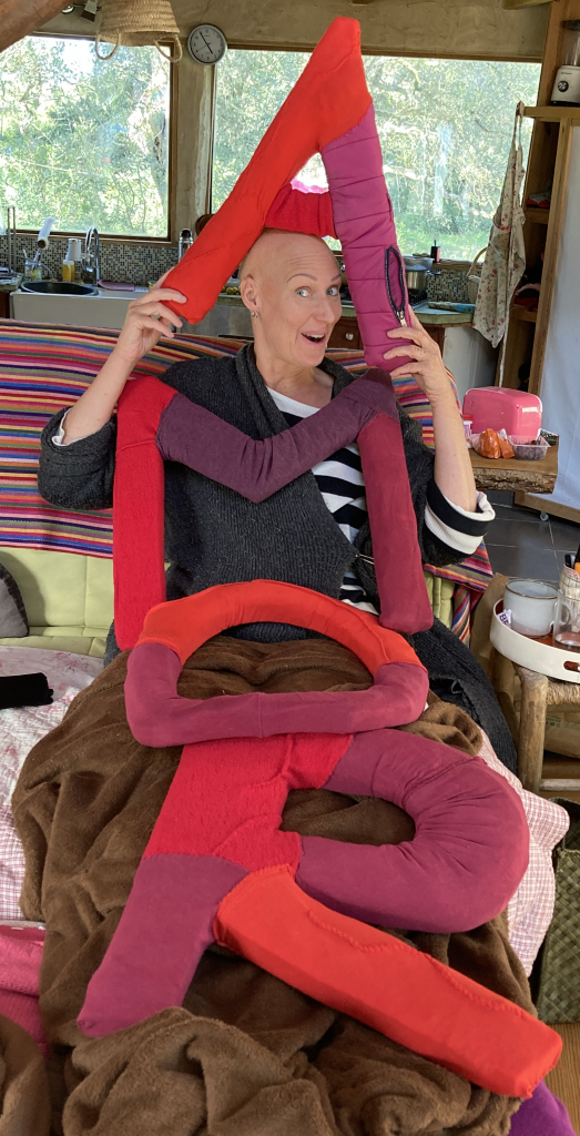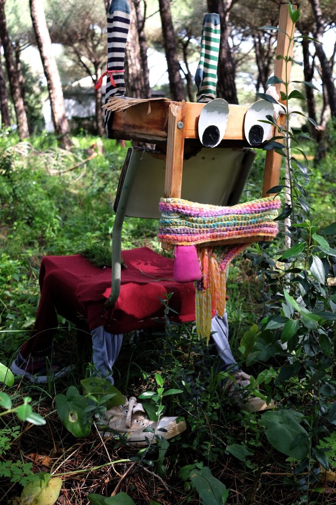 The title of the current exhibition is: AMOR. I use recycled materials for my sculptures in PaseArte, such as plastic packaging, chairs, flip-flops and more. My art object Fred calls out: „Look! I am garbage. I am looking at you with big eyes. Do you want to play with me? Do you want to hold me and love me?“ By taking this installation made of garbage into our hearts, like a pet, we can see that it is not things that are important, but our feelings about them. We give value to everything through our feelings. Just as Mother Earth carries us and loves us. Let us give this love to silent nature and stroke and hold it. Give thanks, every day.